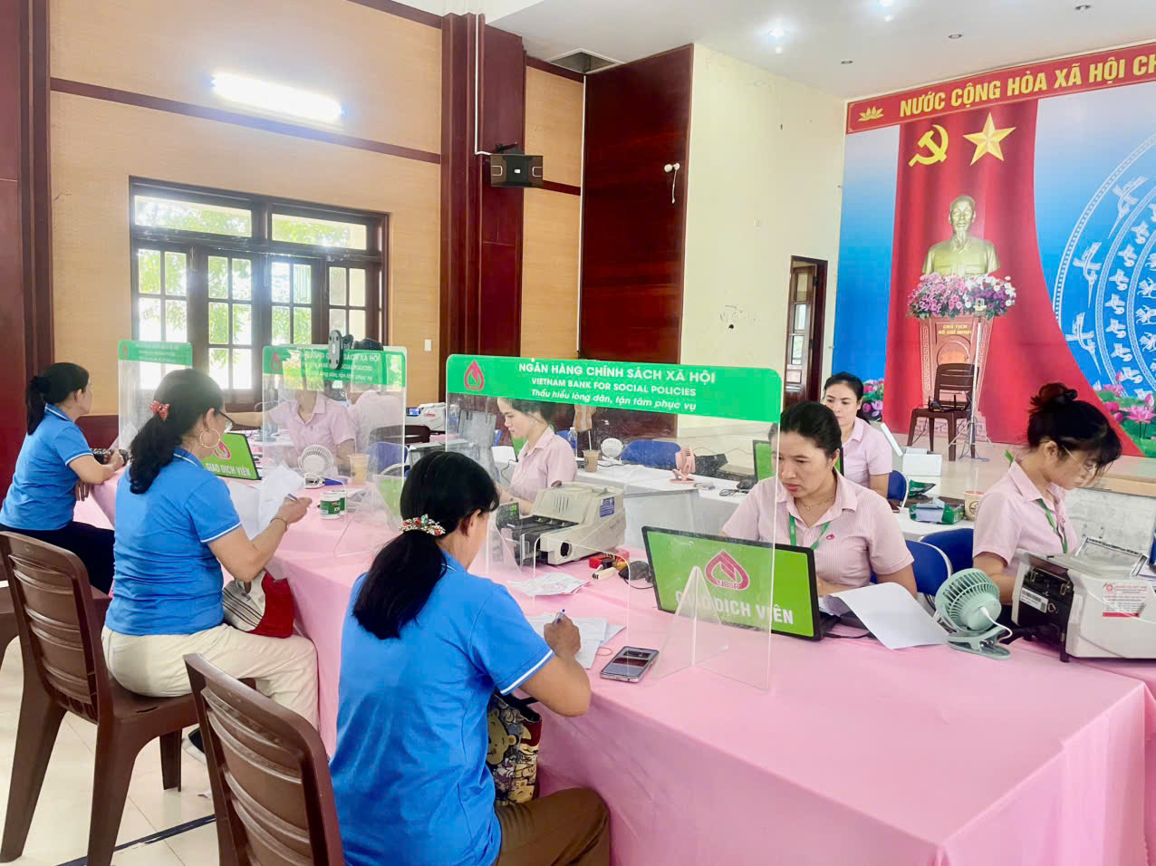 Tại phiên giao dịch đã thực hiện các hoạt động giải ngân, thu nợ, gởi tiền, rút tiền tiết kiệm của người dân được diễn ra thông suốt. Nguồn vốn đã được giải ngân kịp thời đến các đối tượng thụ hưởng với số tiền 1.859 triệu đồng/26 khách hàng, tỷ lệ thu lãi đạt 100%.Tổng dư nợ của Điểm sau giao dịch 89.086 triệu đồng/1329khách hàng.