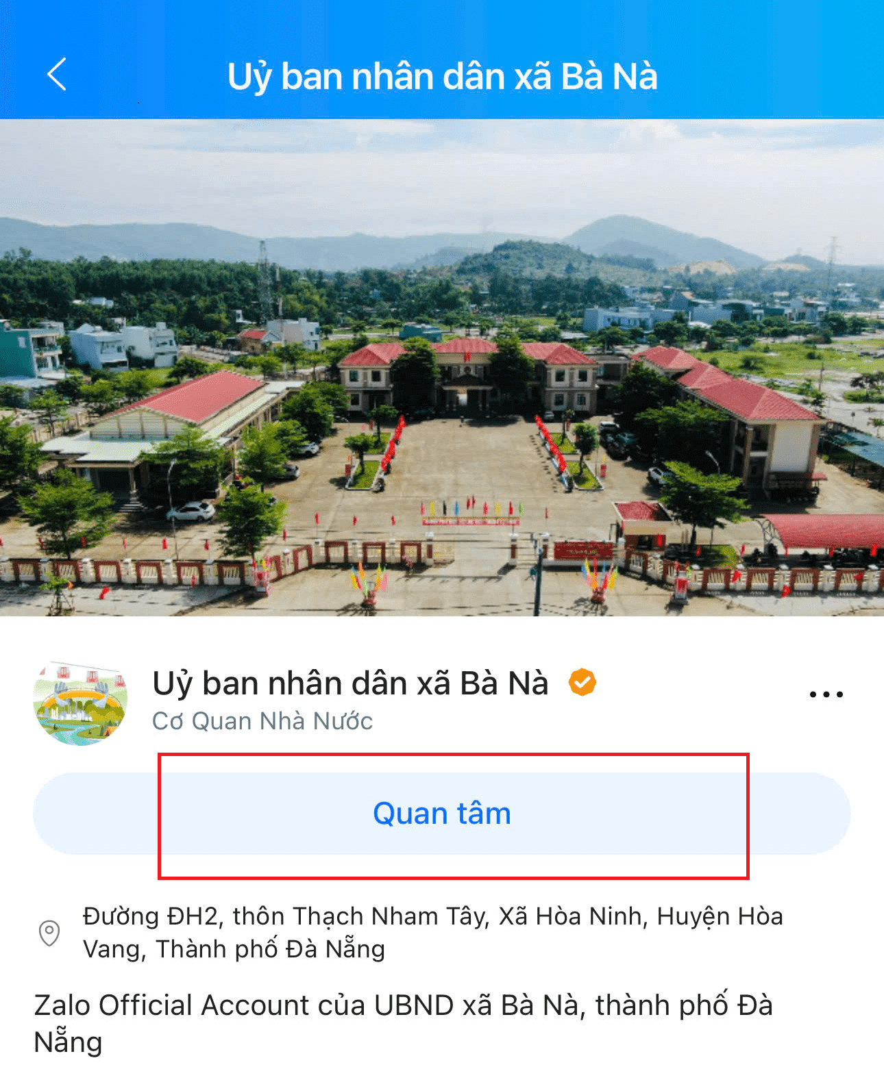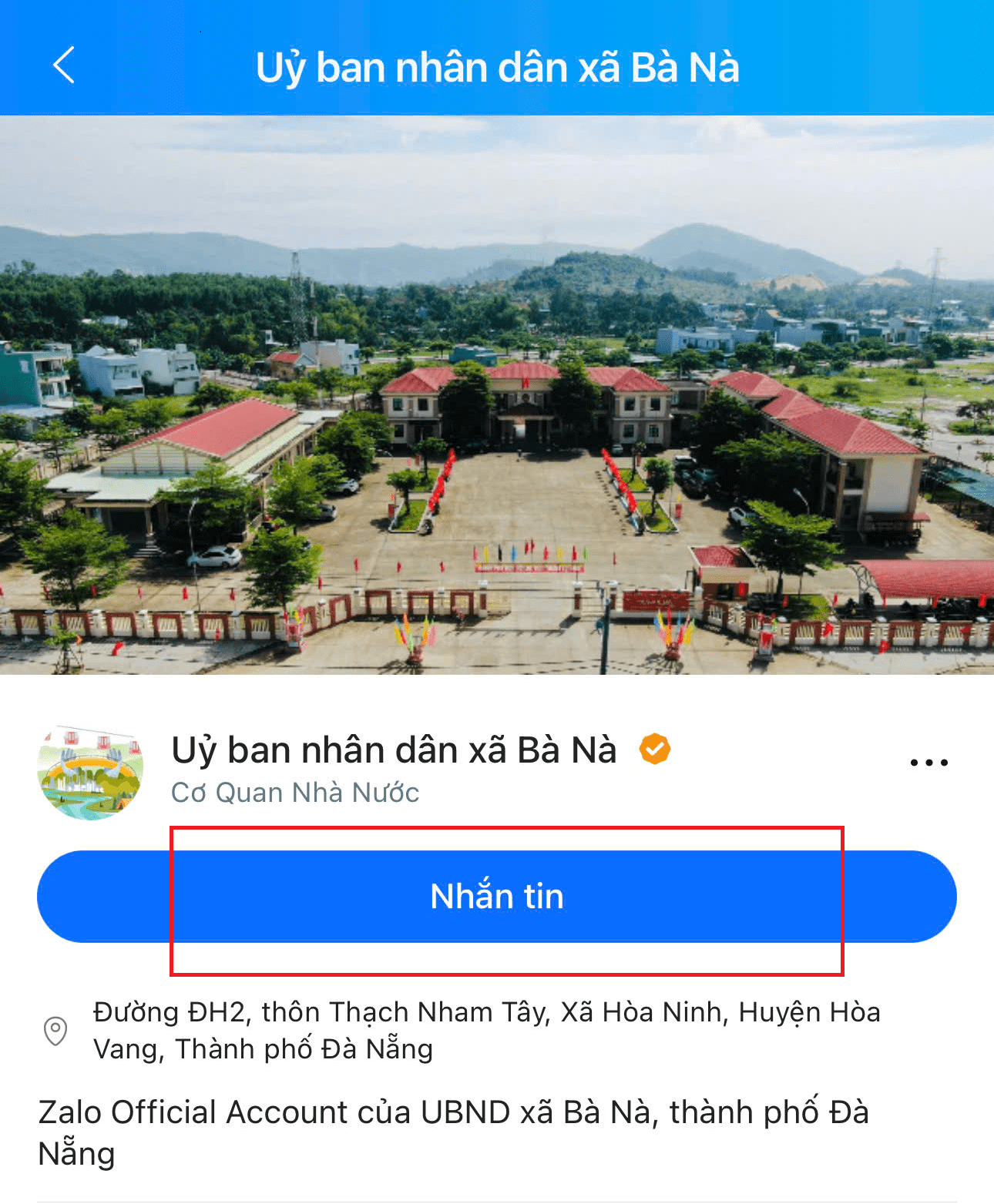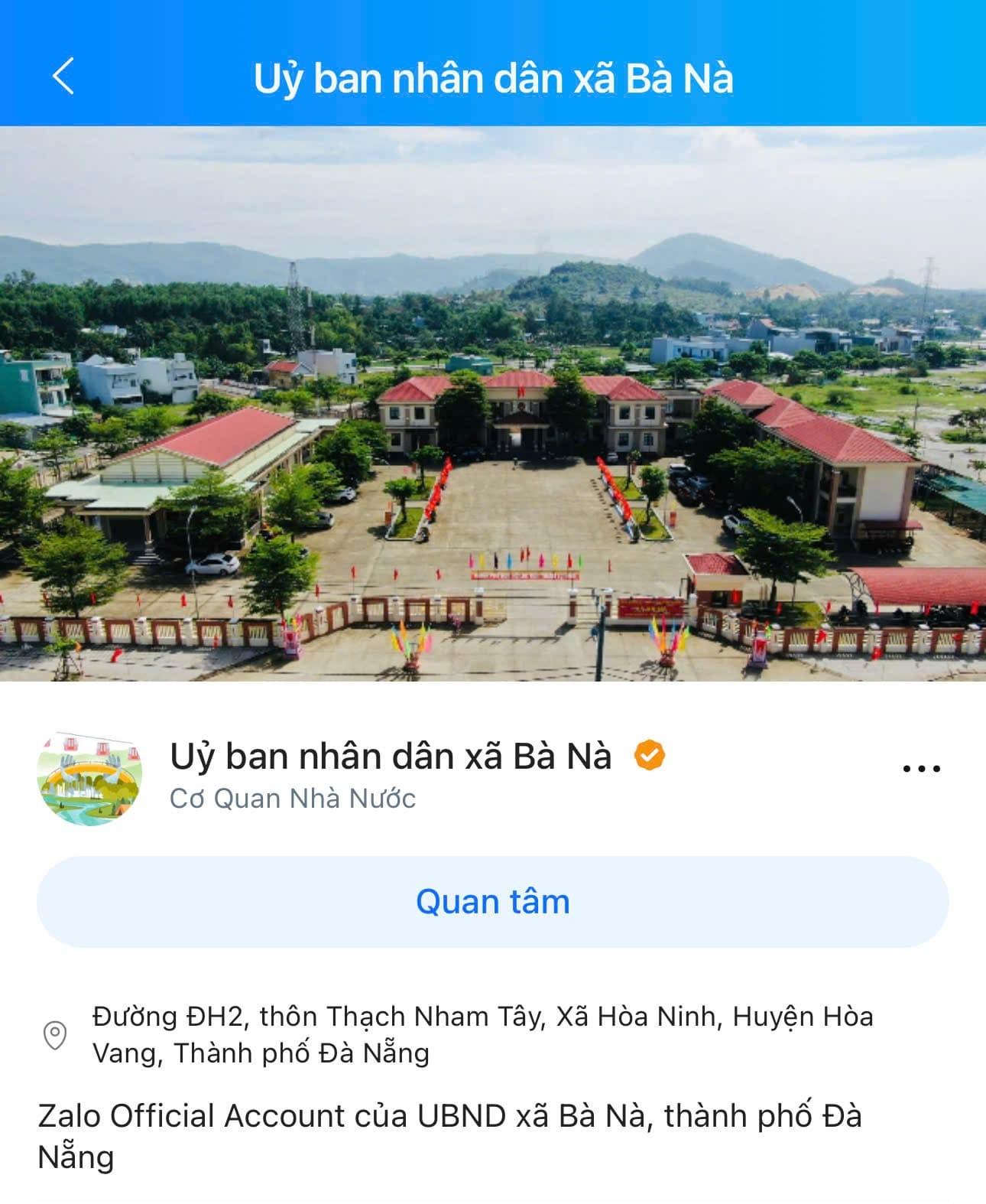 Bước 1: Truy cập trang Zalo OA “UBND xã Bà Nà” tại link: https://zalo.me/4177658803144203342