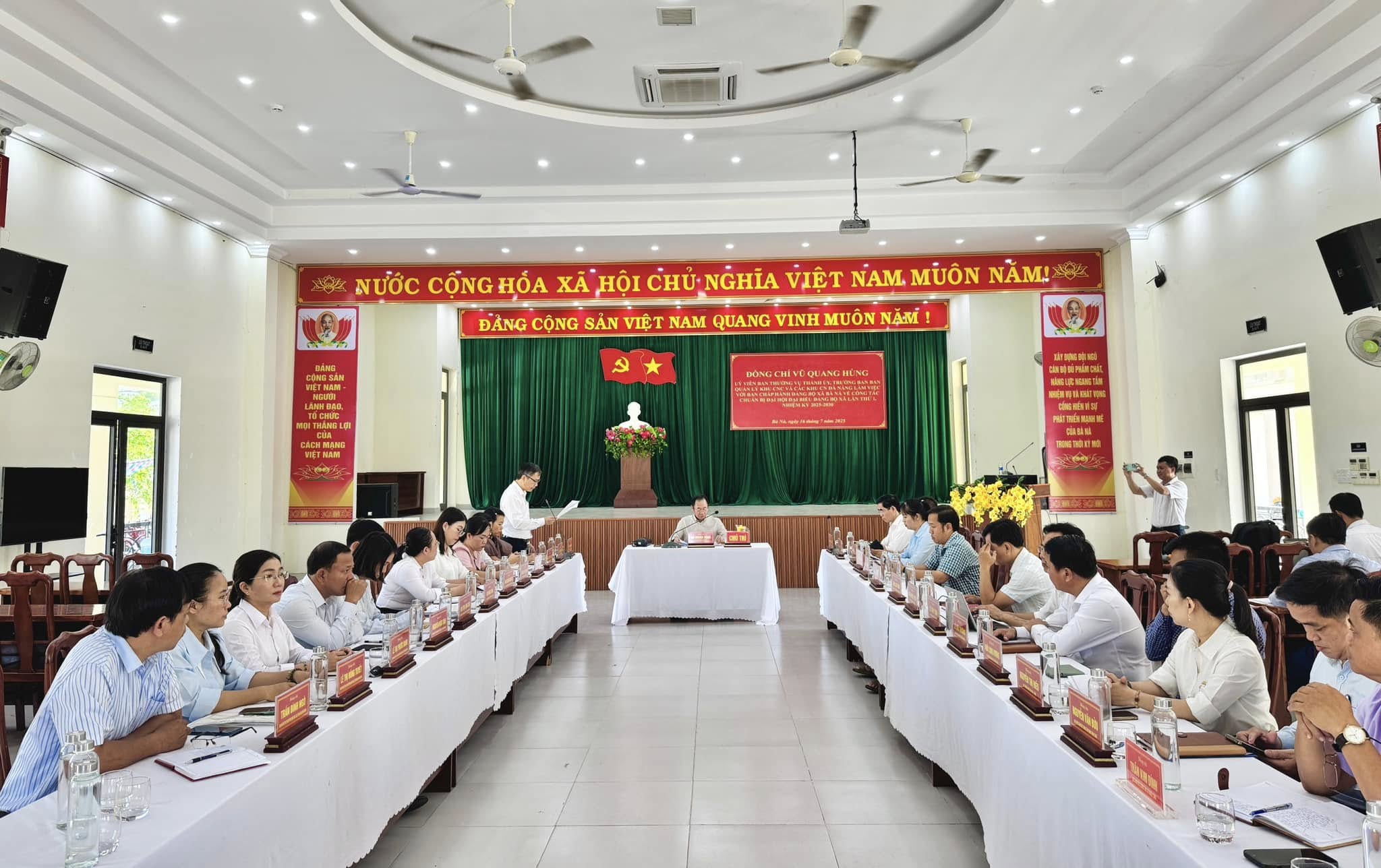 Thực hiện chương trình công tác chỉ đạo Đại hội Đảng các cấp tiến tới Đại hội Đảng bộ thành phố Đà Nẵng lần thứ XXIII, nhiệm kỳ 2025-2030, sáng 16/7/2025, đồng chí Vũ Quang Hùng – Ủy viên Ban Thường vụ Thành ủy, Trưởng Ban Quản lý Khu Công nghệ cao và các Khu công nghiệp Đà Nẵng đã có buổi làm việc với Ban Chấp hành Đảng bộ xã Bà Nà nhằm kiểm tra, nắm bắt tình hình, tiến độ chuẩn bị và định hướng công tác tổ chức Đại hội đại biểu lần thứ I, nhiệm kỳ 2025-2030.