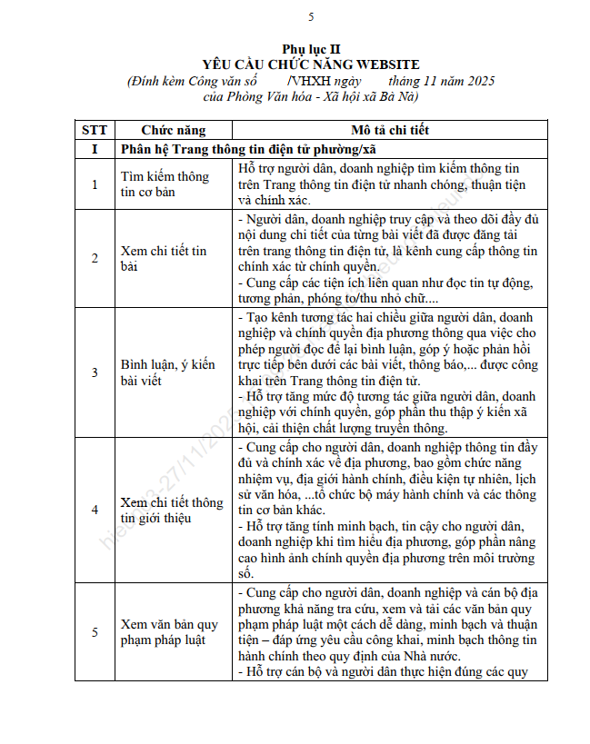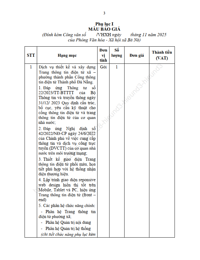 Về việc đề nghị báo giá xây dựng Trang thông tin điện tử xã Bà Nà